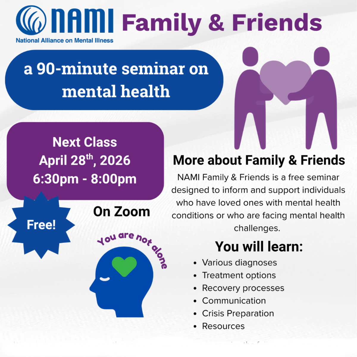 NAMI Family & Friends is a free seminar for people who have loved ones with a mental health condition.